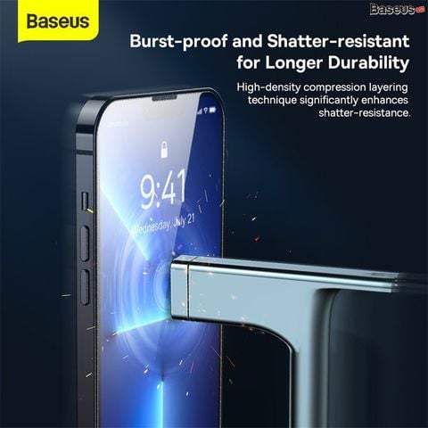 - Kính cường lực Baseus Full -Glass có độ dày 0,3mm, cấu tạo 5 lớp siêu bền, chống va đập, kháng bám nước/ dầu/ vân tay, chống nhòe. Bảo vệ màn hình cực tốt, khả ngăng chống trầy xước cao nhờ lớp ngoài cùng được phủ lớp vật liệu chống trầy xước.