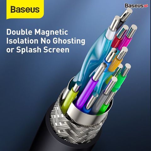 - Cáp Baseus high definition được bảo vệ bởi 2 lớp nhôm mạ và lưới bện để ngăn ngừa lỗi chất lượng hình ảnh do trường điện từ gây ra