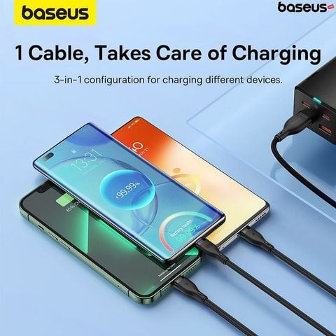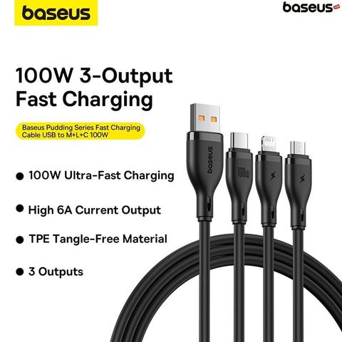 Giới thiệu Cáp Sạc Đa Năng 3 in 1 Baseus Pudding Series One-for-three Fast Charging Cable USB to M+L+C 100W