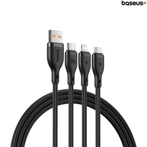 Hình ảnh Cáp Sạc Đa Năng 3 in 1 Baseus Pudding Series One-for-three Fast Charging Cable USB to M+L+C 100W