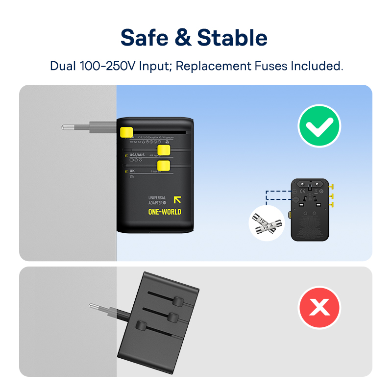 Tính năng Củ Sạc Du Lịch Toàn Cầu 2AC+2U+2C Baseus EnerCore CG11 70W (with Type-C Built-in cable, Multiple Protections, US/UK/AU/EU)