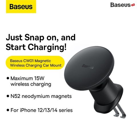 Đế Giữ Điện Thoại Tích Hợp Nam Châm Baseus CW01 Magnetic Wireless Charging Car Mount Air Vent Version Sạc Không Dây 15W (Magsafe Wireless Quick Charger and Holder for Car)