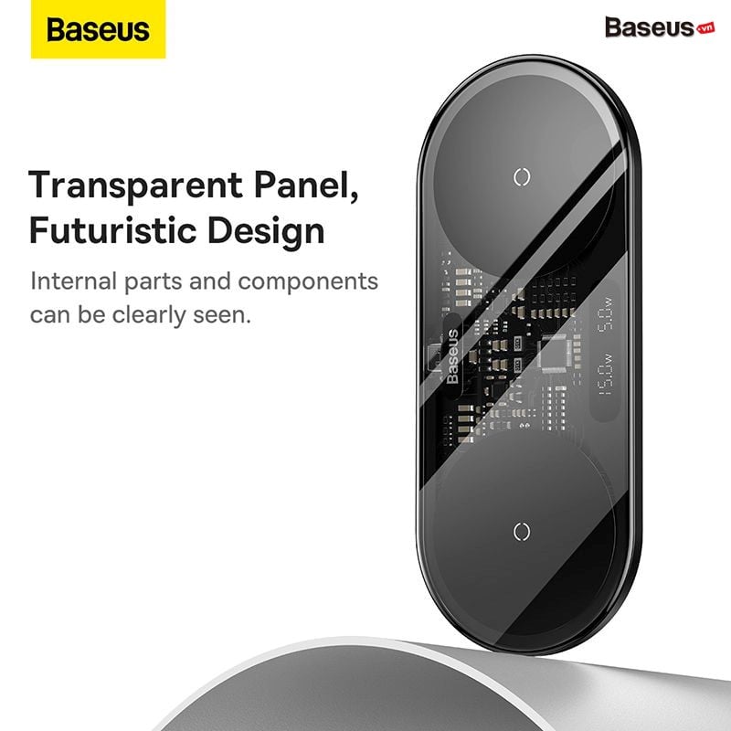 - Bộ đế sạc nhanh không dây Baseus Wireless Charger được trang bị kèm củ sạc nhanh công suất cao đảm bảo hiệu suất hoạt động cho thiết bị. Bạn có thể sạc không dây cho cùng lúc 2 smartphone hoặc 1 smartphone và 1 tai nghe, công suất tối đa có thể lên đến hơn 20W (Phone + Phone: 10W + 10W hoặc Phone + AirPods: 15W + 5W ).
