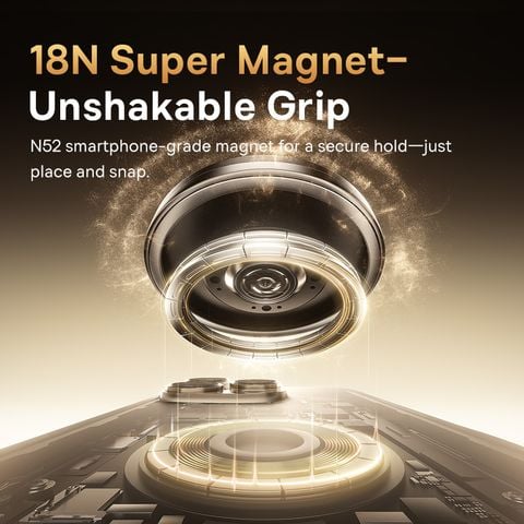 Nam châm neodymium chuẩn công nghiệp cho lực hút lên đến 18 N, giữ điện thoại cố định ngay cả khi đi qua đường gồ ghề, đảm bảo an toàn tối đa cho thiết bị.