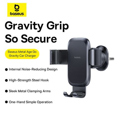 Giá đỡ điện thoại trên ô tô Baseus Metal Age Go Gravity là giải pháp tiện lợi cho việc cố định điện thoại khi lái xe. Với thiết kế gắn cửa gió, sản phẩm sử dụng cơ chế kẹp trọng lực thông minh, tự động điều chỉnh để vừa vặn với nhiều loại điện thoại. Chất liệu kim loại cao cấp đảm bảo độ bền và tính thẩm mỹ, trong khi khả năng xoay 360 độ mang lại góc nhìn linh hoạt.