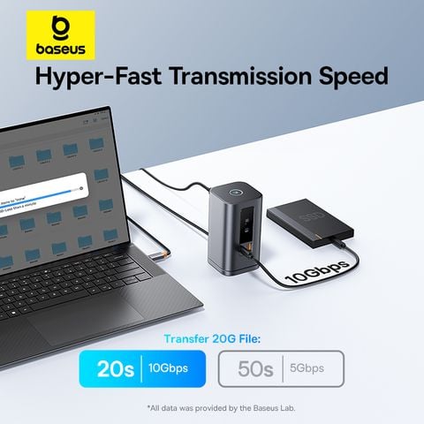 Với cổng USB-A và USB-C có tốc độ truyền dữ liệu lên đến 10Gbps, bạn có thể truyền tải dữ liệu nhanh chóng và hiệu quả mà không gặp trở ngại.