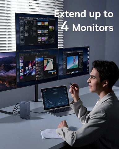 Điểm nổi bật của Baseus UnionJoy Pro17-Port là tính năng Four-Screen Display, cho phép bạn kết nối đến 4 màn hình cùng một lúc, tăng đáng kể năng suất làm việc.