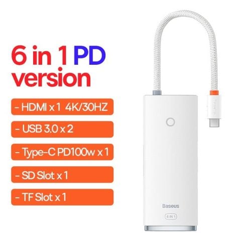- Baseus Lite cho phép bạn mở rộng thêm nhiều cổng kết nối (4/5/6 cổng kết tùy phiên bản ). Sản phẩm hỗ trợ hầu hết các chuẩn kết nối phổ biến nhất hiện nay như Type C, PD, USB 3.0/2.0, HDMI, SD/TF Card Reader . Là giải pháp mở rộng kết nối hoàn hảo và tiết kiệm cho Laptop/ Macbook/ Smartphone khi thiếu các cổng kết nối. Mang đến hiệu suất làm việc tối ưu khi có khả năng kết nối 6 cổng một lúc nhưng vẫn đảm bảo chất lượng tốt nhất .