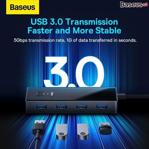 Baseus PioneerJoy cung cấp cổng USB 3.0 với tốc độ truyền dữ liệu lên tới 5Gbps, cho phép bạn chuyển dữ liệu nhanh chóng và dễ dàng giữa các thiết bị.