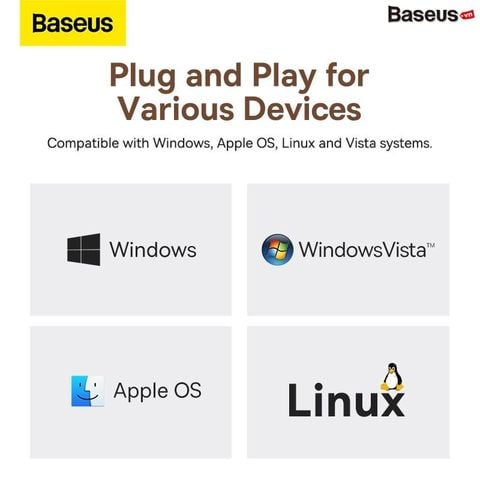 Plug and play chỉ cần cắm và trực tiếp sử dụng mà không cần cài driver hay các phần mềm. Hỗ trợ nhiều hệ điều hành phổ biến nhất hiện nay như: Windows, Linux, MAC OS, Android, iPad OS...,t ương thích hầu hết các thiết bị số hiện nay.