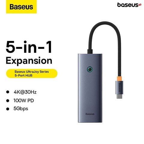 Baseus UltraJoy Series 6-Port HUB Docking Station được thiết kế để mở rộng khả năng kết nối của máy tính xách tay hoặc máy tính bảng, giúp người dùng có thể kết nối với nhiều thiết bị khác nhau một cách dễ dàng. Một trong những tính năng đặc biệt của Baseus UltraJoy Series 6-Port HUB Docking Station là cổng