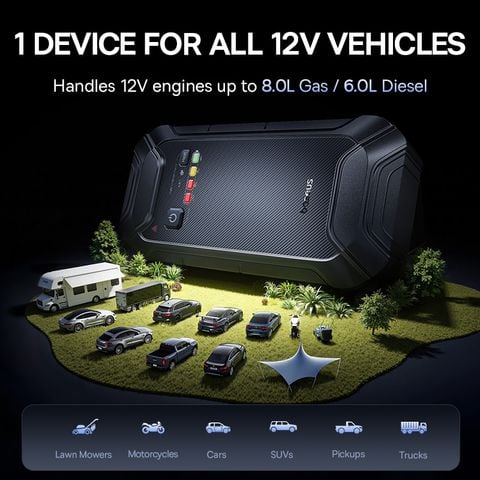 Với dung lượng pin lớn lên đến 12000mAh và dòng khởi động cực đại 5000A, thiết bị này có khả năng kích nổ mạnh mẽ, phù hợp với hầu hết các dòng xe gia đình có động cơ xăng và diesel.