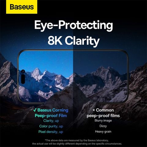 bên cạnh dòng sản phẩm miếng dán thông thường, Baseus còn cung cấp miếng dán cường lực chống nhìn trộm, giúp bạn không bị “nhòm ngó” bởi những người xung quanh. Tuy vậy, Corning vẫn đảm bảo cho người dùng một khả năng hiện thị tuyệt vời mà không làm tối màn hình của bạn.