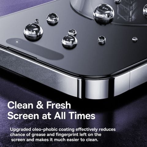 Với lớp phủ chống vân tay, Kính Cường Lực Baseus Schott Series Full-Coverage HD Tempered Glass Screen Protector with Built-in Dust Filter for iP 15 giúp giữ cho màn hình điện thoại luôn sạch sẽ và trong suốt.