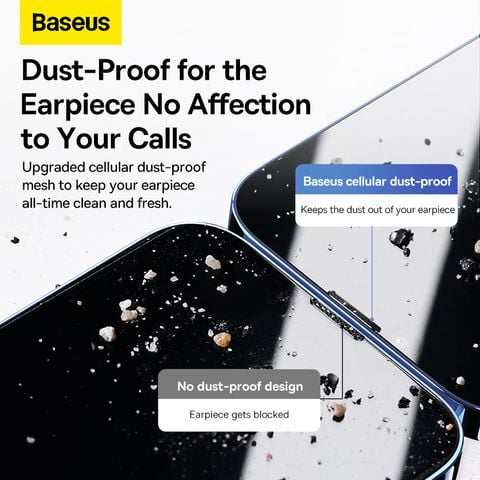 Hình Ảnh Kính Cường Lực Full HD 8K Chống Bụi Màn Loa Cho iPhone 14 series Baseus All-glass Nano Crystal