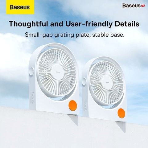 - Baseus Serenity Desktop Fan được trang bị viên pin Lithium dung lượng 2000 mAh cho thời gian sử dụng lên đến 7h