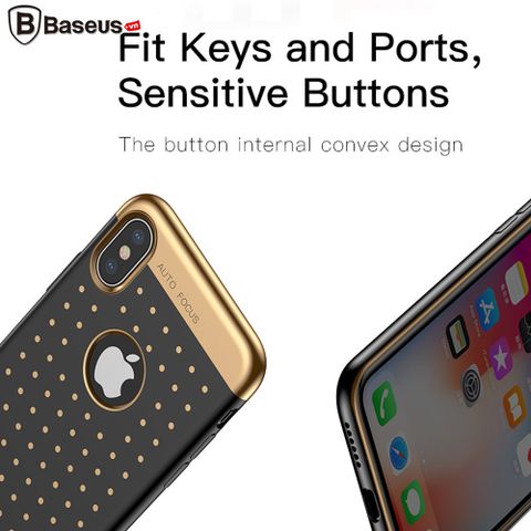 - Bề mặt lưng siêu mịn , chống bám vân tay với điểm nhấn là các nhỏ được xi mạ giả kim loại, tỉ mỉ làm cho chiếc iPhone X của bạn càng thêm phần sang trọng và đẳng cấp .