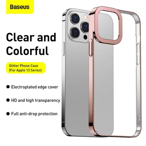 - Ốp lưng trong suốt viền si màu Baseus Glitter cho iPhone 13 có phong cách thiết kế tinh tế và thời trang chuyên dùng cho iPhone 13 Series.
