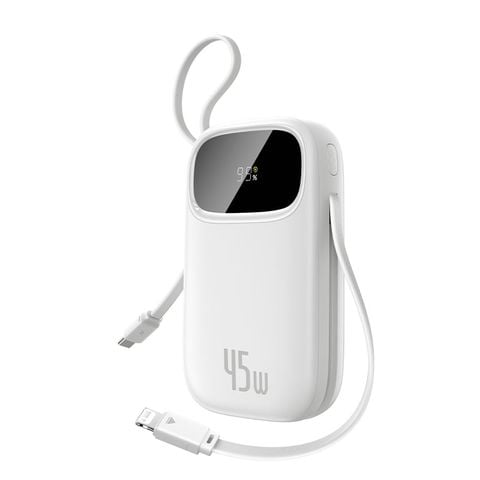 Một trong những tính năng nổi bật nhất là việc tích hợp sẵn hai cáp sạc USB-C và Lightning (một số phiên bản có thể có cáp USB-C thu gọn và cáp gập ngắn), loại bỏ nỗi lo quên mang theo dây cáp. Điều này giúp bạn sạc cho hầu hết các thiết bị di động phổ biến mà không cần thêm phụ kiện.