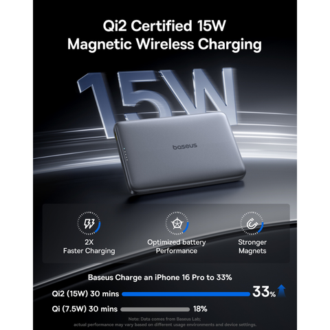 Trải nghiệm tốc độ sạc không dây nhanh và ổn định hơn bao giờ hết với chuẩn Qi2. Công suất lên đến 15W giúp sạc đầy pin cho các thiết bị tương thích một cách hiệu quả, tối ưu hóa thời gian chờ đợi của bạn.