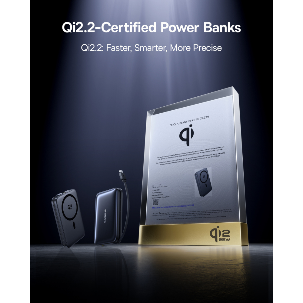 Đây là điểm sáng giá nhất của sản phẩm. Không chỉ dừng lại ở mức 15W thông thường, Baseus PicoGo AM61 đạt chứng nhận Qi2.2, hỗ trợ công suất sạc không dây tối đa lên tới 25W.
