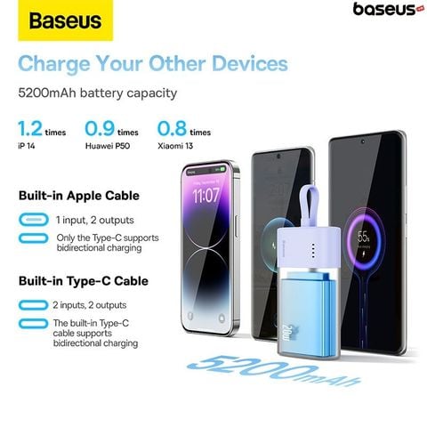 Tính năng Pin Dự Phòng Sạc Nhanh Baseus Popsicle Fast Charging Power Bank IP Edition 5200mAh 20W PD, QC, AFC, FCP (With Baseus Simple wiring Type-C to Type-C 60W)