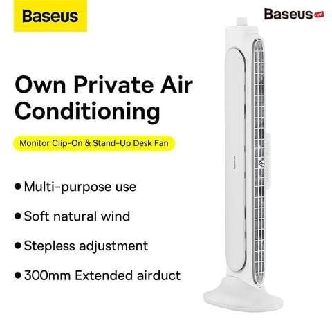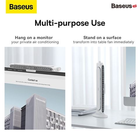- Baseus Refreshing sử dụng đa mục đích, kẹp màn hình chắc chắn khi làm việc trên máy tính. Ngoài ra sản phẩm có chân đế chắc chắn giúp bạn dễ dàng đặt trên bàn mà không sợ bị rơi, đổ, giúp đem đến những làn gió mát, giải tỏa sự nóng bức của cơ thể, để đạt hiệu quả tốt nhất trong công việc cũng như học tập. Phần chân đế của chiếc quạt nhỏ để bàn Monitor được thiết kế theo dạng chiếc tháp nên phù hợp với mọi không gian và vị trí để quạt.