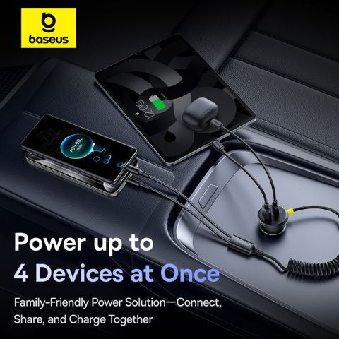Sản phẩm đi kèm với dây dài lên tới 1.4m được thiết kế dạng lò xo, giúp dễ dàng quản lý và sử dụng mà không lo bị rối, tạo sự thuận tiện khi sạc trong xe.