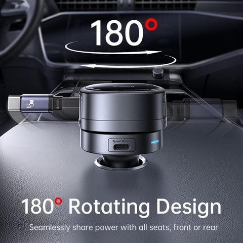 Một trong những tính năng nổi bật của PrimeTrip VR1 là cáp sạc tích hợp có thể rút gọn (Type-C và Lightning) 0.8m, giúp bạn không còn lo lắng về tình trạng dây sạc rối rắm hay thất lạc. Thiết kế này mang lại sự gọn gàng và tiện dụng tối đa trong không gian nội thất xe.
