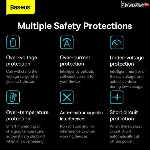- Baseus Golden Contactor Pro được chứng nhận nhiều biện pháp an toàn như bảo vệ quá áp, quá dòng, quá nhiệt, chống nhiễu điện từ, tự động ngắt mạch khi có hiện tượng chạm điện. bảo đảm an toàn tuyệt đối cho những chặn đường của bạn.